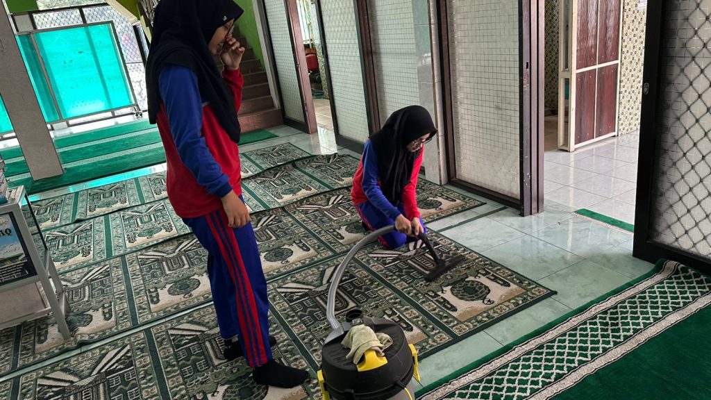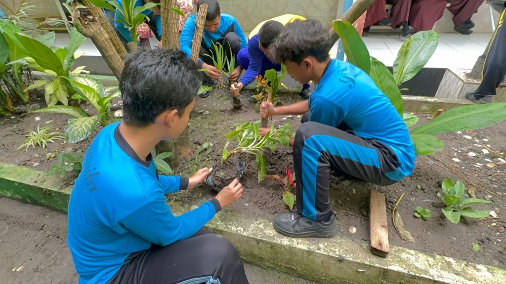 Aksi penanaman pohon di area lingkungan sekolah termasuk taman didepan kelas dan di halaman sekolah. Siswa-siswi sangat antusias membawa tanaman dalam polyback ataupun pot masing-masing. Tanaman yang dibawa pun beraneka ragam. Mulai dari bunga marigold, sri rejeki, blue eyes dan tanaman hias lainnya. Pihak sekolah juga menyediakan tanaman buah. Penanaman pohon ini bertujuan untuk menciptakan suasana sekolah yang lebih hijau, asri, dan sejuk, sekaligus menanamkan kesadaran kepada siswa akan pentingnya menjaga kelestarian lingkungan sekolah sejak dini. Dilanjutkan dengan bersih-bersih masjid yang dilakukan dengan membersihkan seluruh area masjid sekolah. Suara riuh mesin vacuum cleaner beradu dengan semangat siswa-siswi untuk bergotong royong. Para siswa yang didampingi wali kelas tampak antusias demi menciptakan lingkungan ibadah yang bersih, nyaman, suci sehingga beribadah bisa lebih khusyuk.