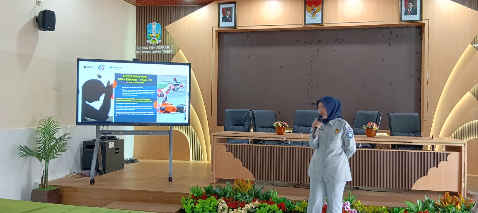 Dalam pemaparannya, Arissa Purnamasari dari Jasa Raharja Jawa Timur menjelaskan peran dan fungsi Jasa Raharja dalam memberikan jaminan asuransi kepada korban kecelakaan lalu lintas. Ia menguraikan jenis santunan yang diberikan, mekanisme pengajuan klaim, hingga pentingnya kelengkapan administrasi.
