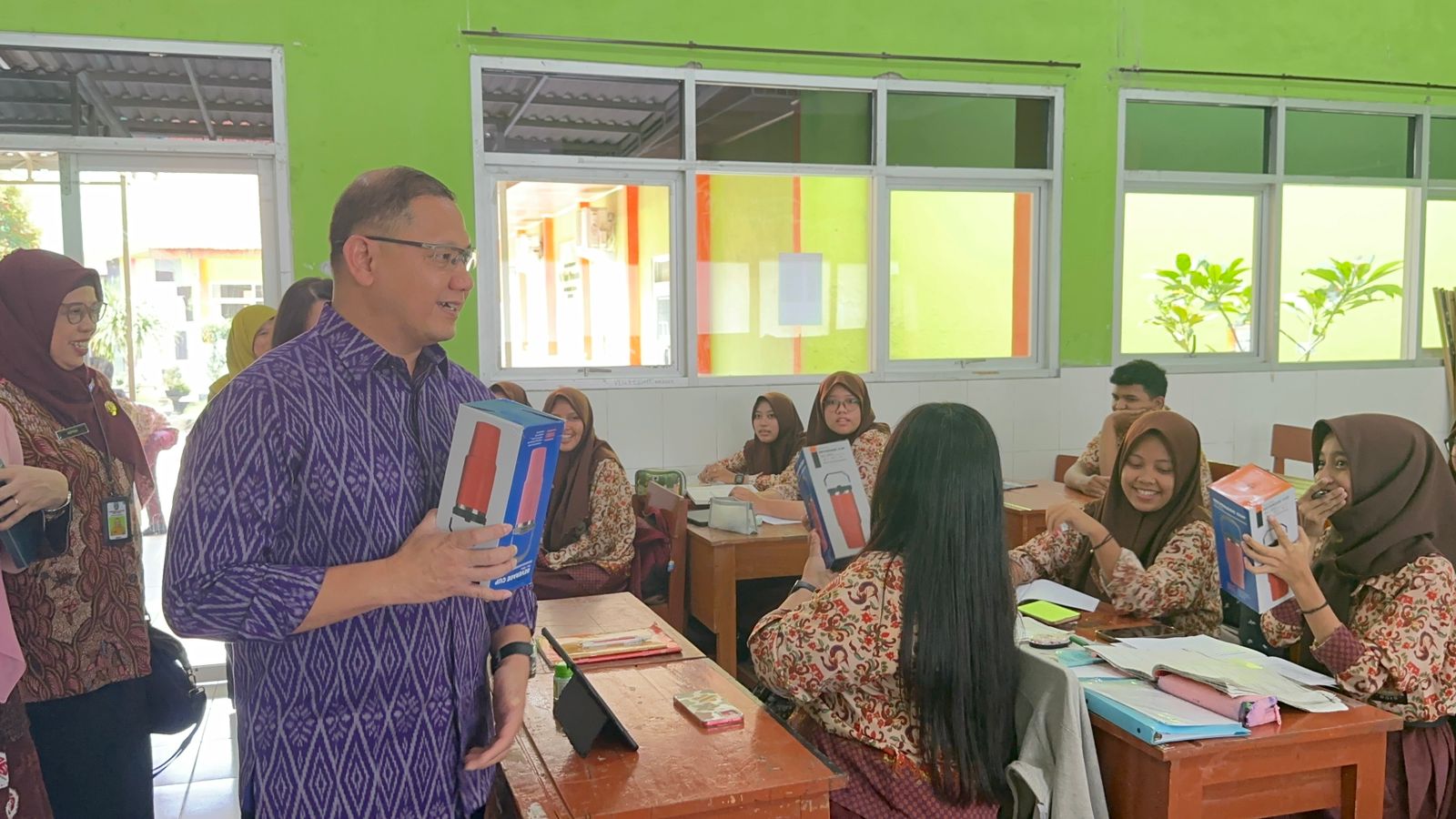 Sebagai bentuk dukungan terhadap gerakan tersebut, Pak Aries memberikan tumbler kepada beberapa siswa yang diketahui belum memilikinya. Pemberian tumbler itu diharapkan dapat mendorong siswa untuk membiasakan diri membawa botol minum sendiri sehingga dapat mengurangi penggunaan botol plastik sekali pakai.