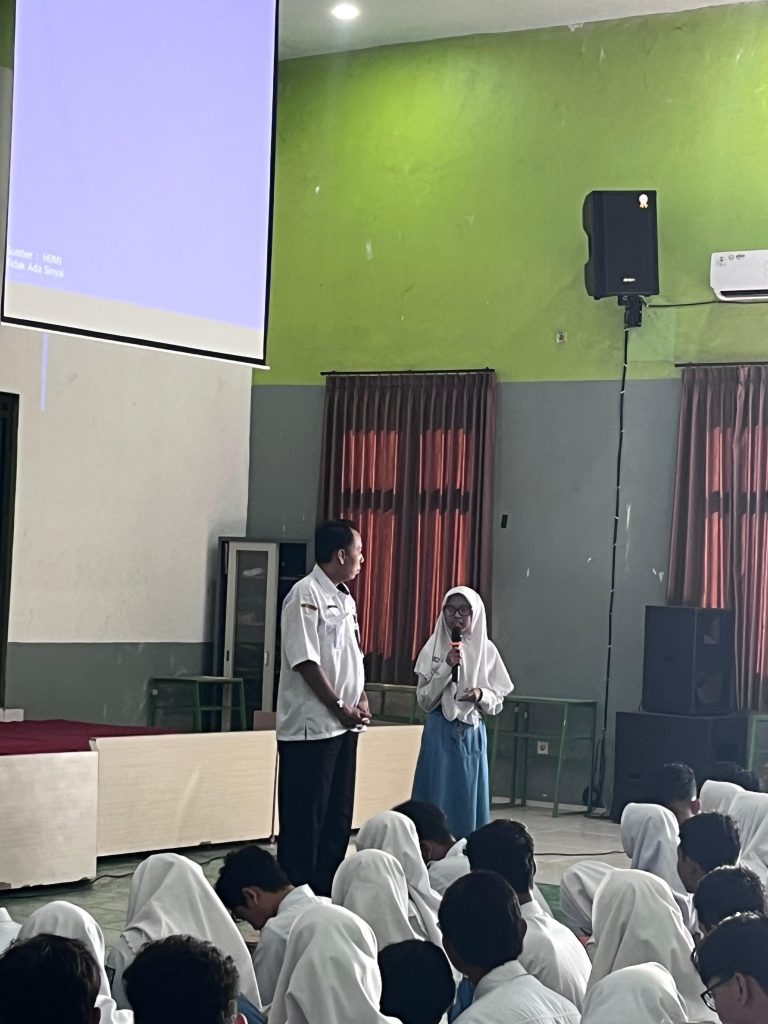 Selanjutnya, peserta mendapatkan pemaparan materi dari narasumber, Rini Sulistyo, yang memberikan wawasan seputar dasar-dasar kewirausahaan dan pentingnya kreativitas dalam membangun usaha sejak usia remaja. Materi yang disampaikan diharapkan mampu memotivasi siswa untuk mulai mengenal dan mencoba dunia bisnis secara sederhana.